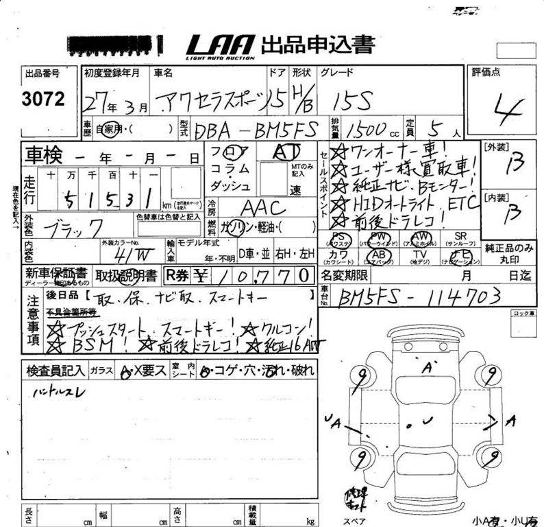 MAZDA AXELA SPORT 15S 2015