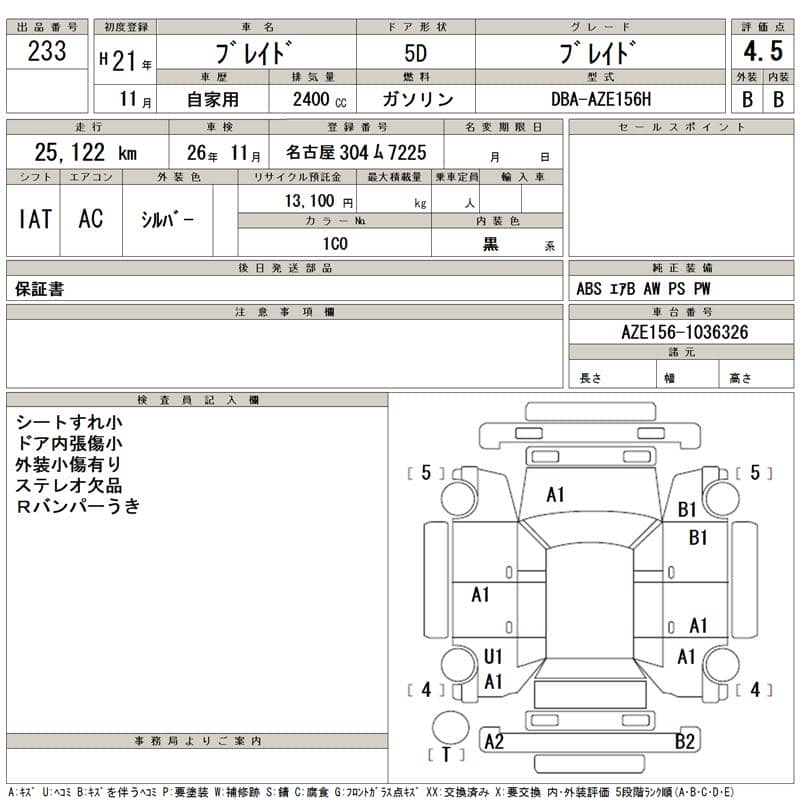 TOYOTA BLADE 2.4 G version L 2009