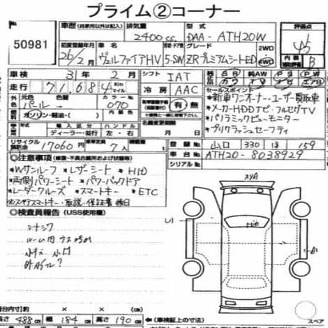 TOYOTA VELLFIRE HYBRID ZR PREMIUM SEAT ED 2014