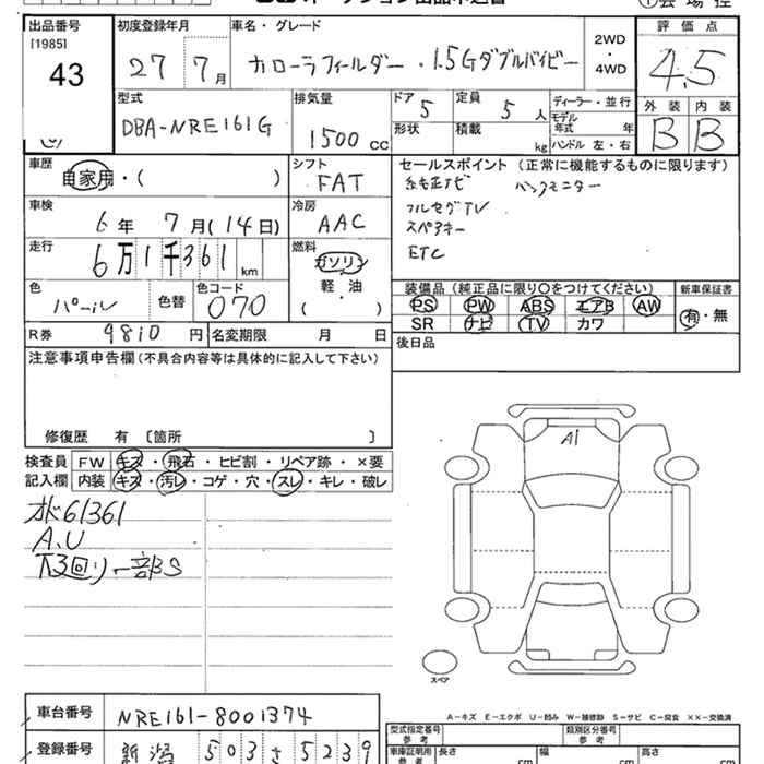 TOYOTA COROLLA FIELDER 1.5G WxB 2015
