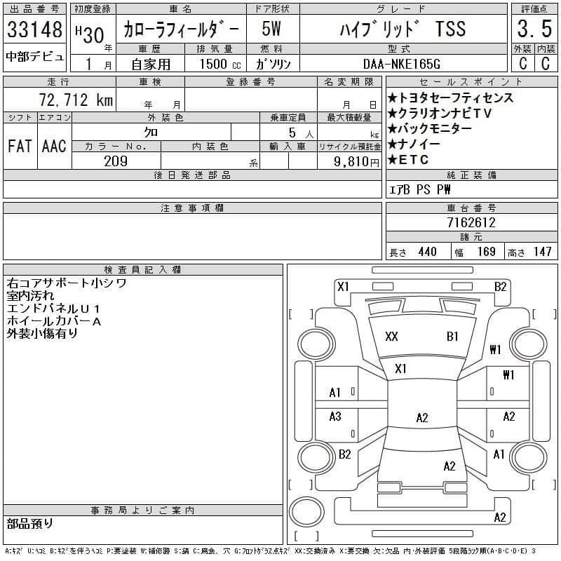 TOYOTA COROLLA FIELDER HYBRID 2017
